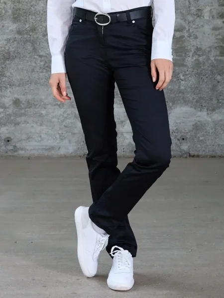 Pantaloni elasticizzati donna a 5 tasche, vita regolare, zip YKK. Lavabili a 60°C.