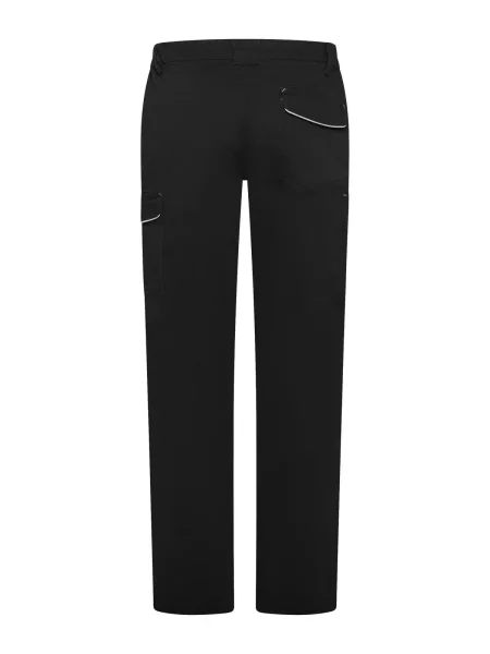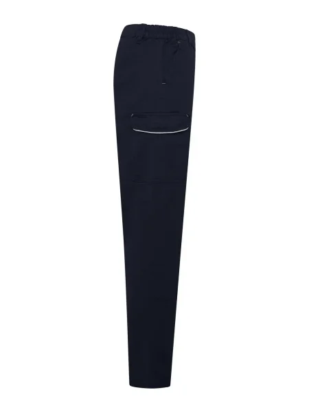 Pantalone da lavoro donna multitasche pensato per garantire comfort e praticità, realizzato in tessuto prelavato elasticizzato composto dal 98% di cotone e dal 2% di elastane e certificato CE CAT1. È dotato di due tasche anteriori, una tasca laterale con piping e chiusura in Velcro, una tasca porta metro o portautensili e una tasca posteriore con piping riflettente e chiusura in Velcro, così da mantenere ogni strumento sempre a portata di mano. Gli inserti HiViz posizionati su fianchi e retro migliorano la visibilità in condizioni di luce ridotta. Le triple cuciture e le impunture di rinforzo a contrasto accrescono la robustezza, mentre le due cuciture anteriori sotto il ginocchio contribuiscono a una migliore resistenza e mobilità. Completano il capo gli elastici in vita per una vestibilità più confortevole e i passanti maggiorati. Etichetta strappabile, ideale per personalizzazioni.