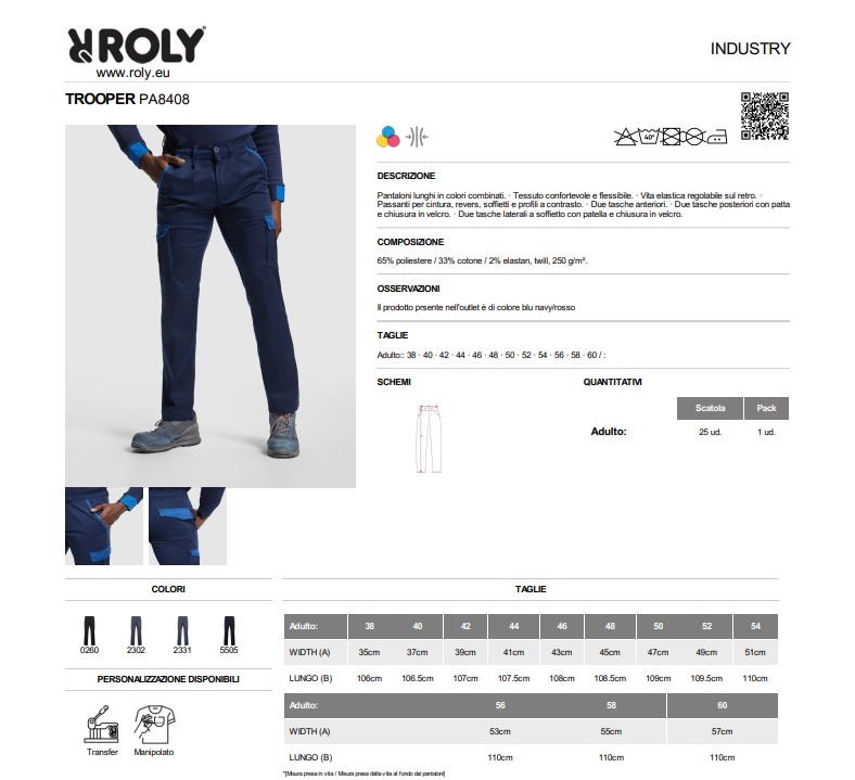 Pantaloni per lavoro uomo personalizzati Roly Trooper