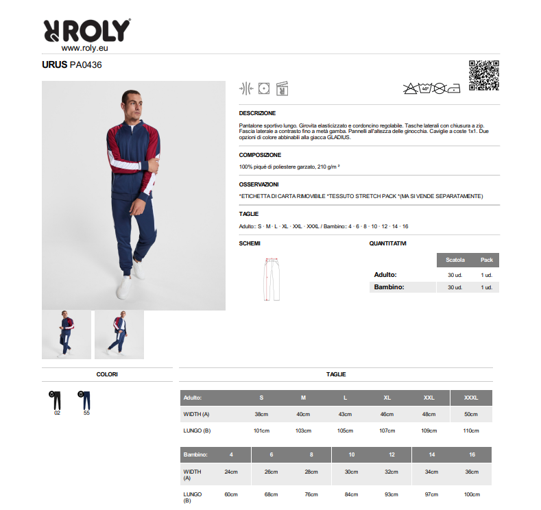 Pantalone uomo e bambino sportivo in poliestere personalizzabile Roly Urus