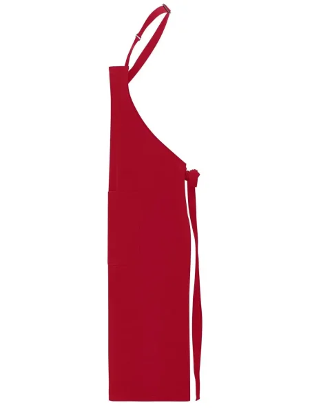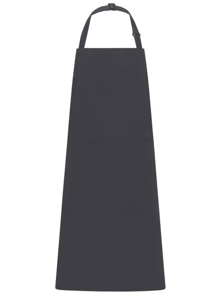Grembiule personalizzato o neutro con pettorina classico. Tessuti misti resistenti di poliestere e cotone. Larghezza pettorina: ca. 30 cm. Larghezza grembiule: 75 cm. Lunghezza totale: 90 cm. Dettagli: tasca cucita in due pezzi (larghezza: 40 cm, altezza: 20 cm), nastro regolabile tramite fibbia in plastica, lavabile a 60°C. Adatto per l'asciugatura in asciugatrice.