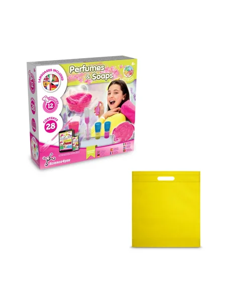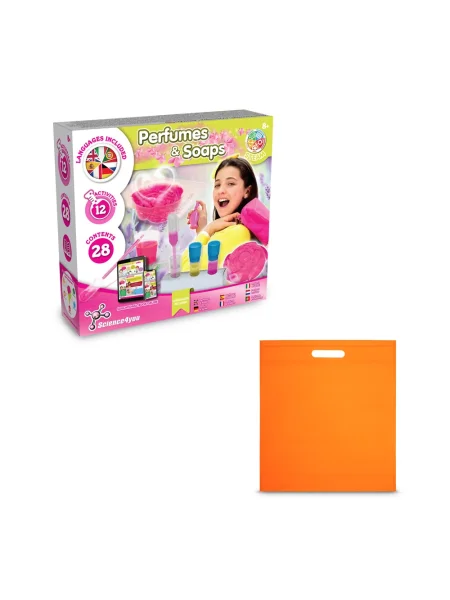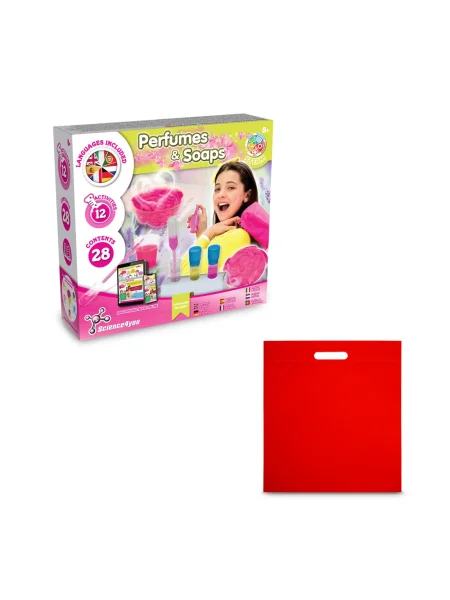 Gioco educativo Fabbrica di profumi e saponi, ideale per far scoprire ai bambini come realizzare i propri saponi e profumi. Età consigliata: +8 anni. Fornito con un sacchetto regalo in tessuto non tessuto (80 g/m²). 234 x 220 x 65 mm