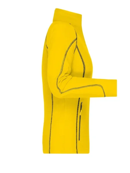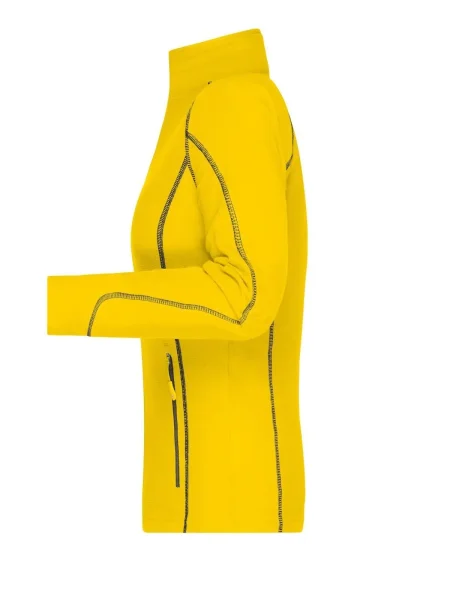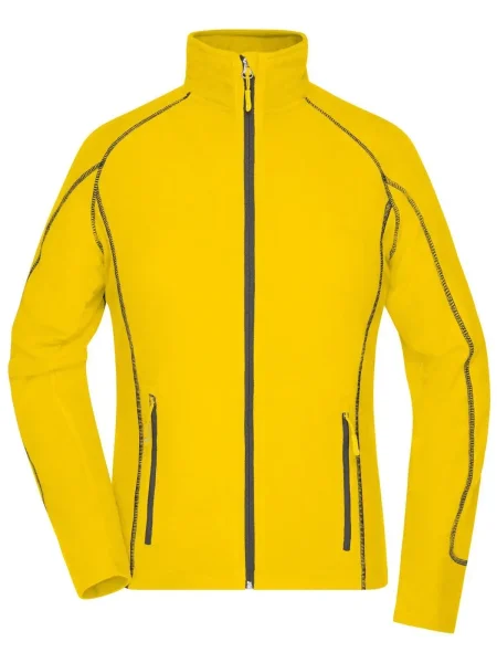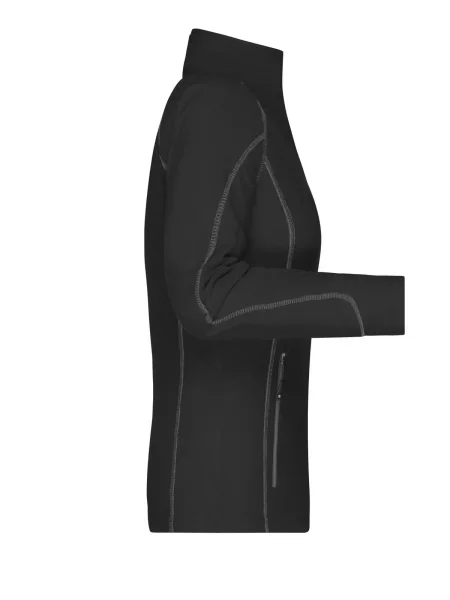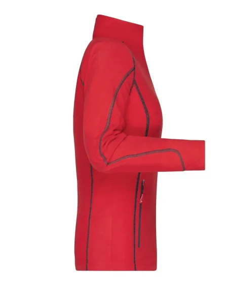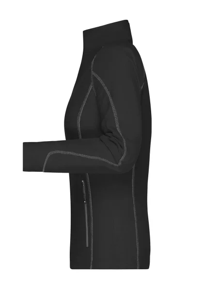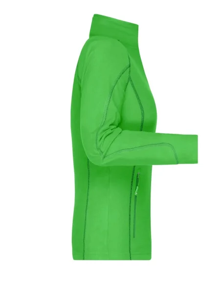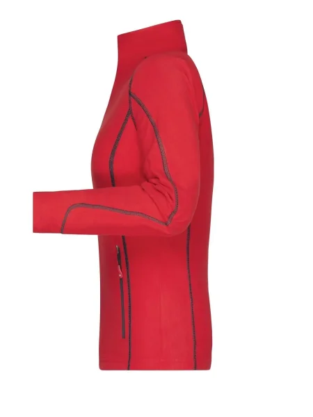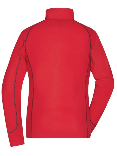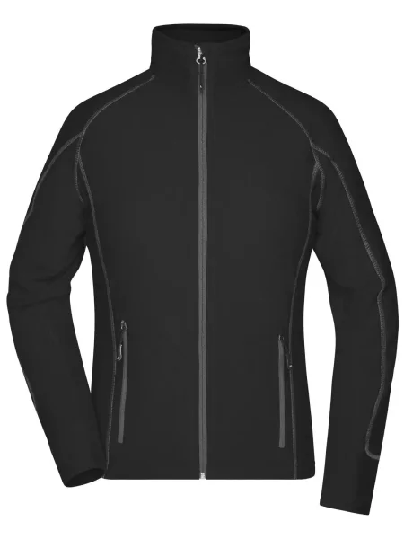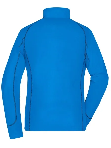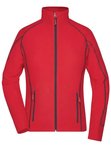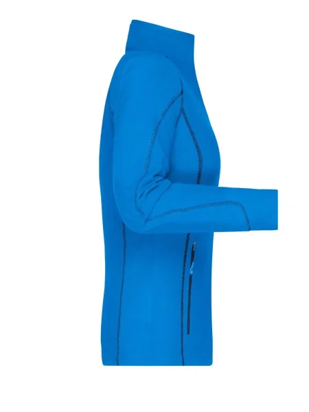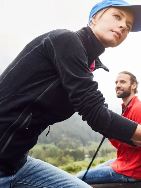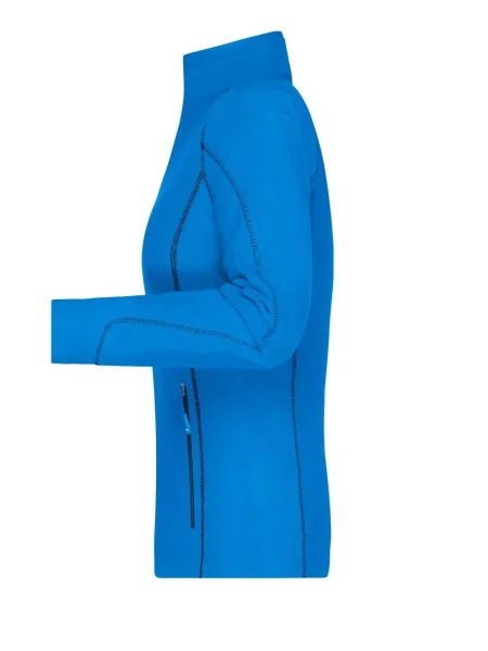 Pile trekking donna personalizzato James & Nicholson, qualità piacevole e liscia. Leggermente strutturata all'esterno, all'interno morbido. Colletto rigido, lunga zip frontale ricoperta con protezione per il mento. Cuciture piatte a contrasto, 2 tasche laterali con cerniera, forma avviatata, tessuto esterno (190 g/m²). Donna, manica lunga, policromo, colletto alla coreana