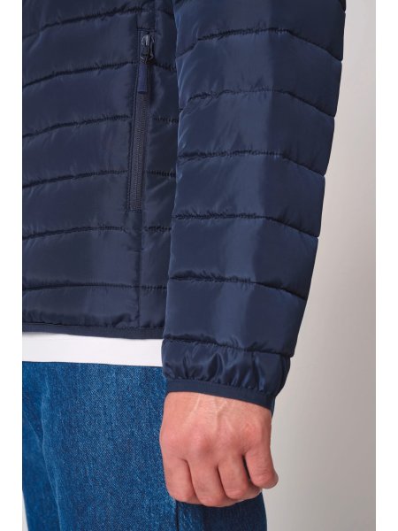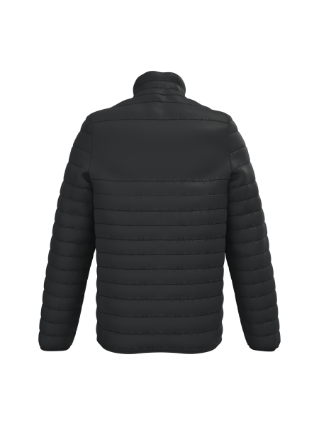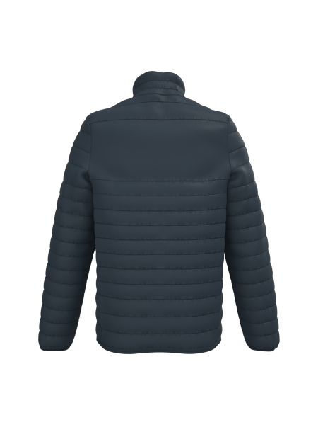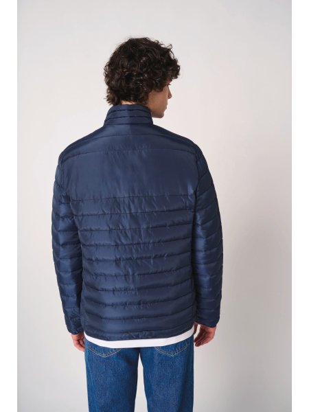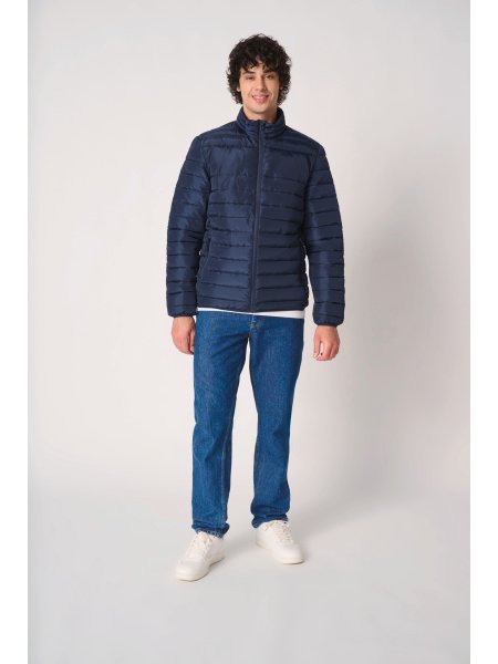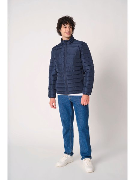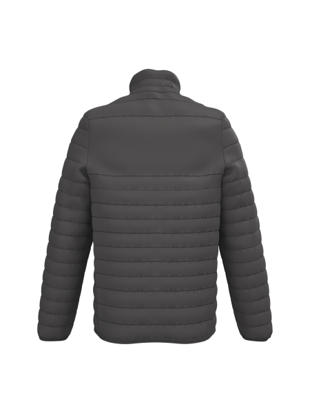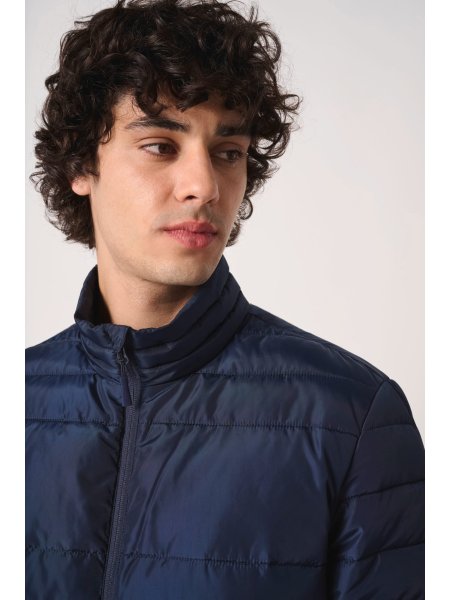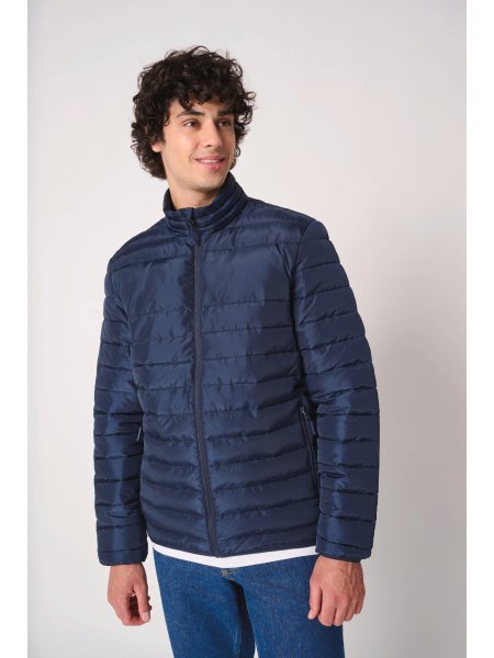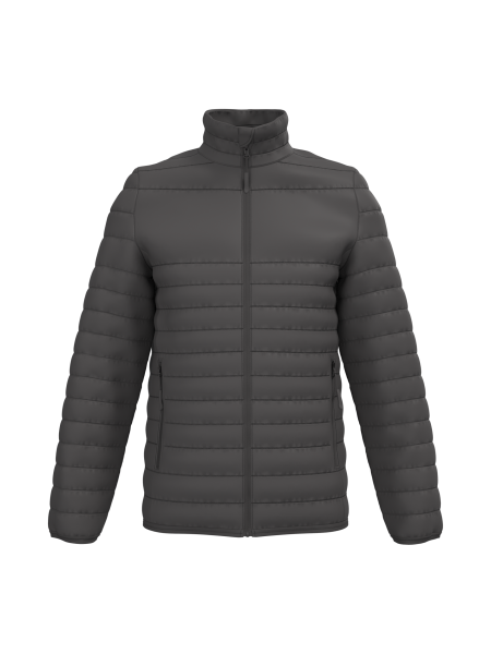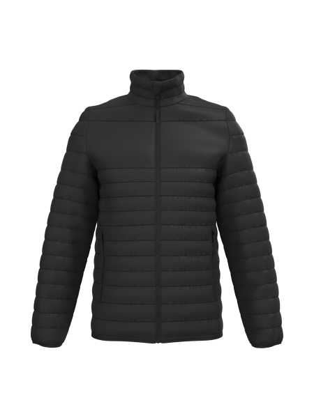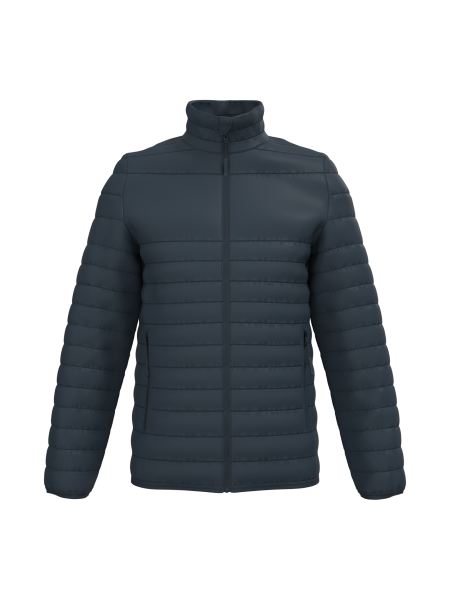 Piumino trapuntato uomo con Imbottitura interna Imbottitura e fodera. 100% poliestere 290T per comfort e durata. Taglio dritto con collo alto, due tasche laterali con zip tono su tono e due tasche interne. Chiusura frontale con zip in nylon, protezione mento e tiretto coordinato. Trapuntatura orizzontale: fascia anteriore da 11 cm e posteriore da 14,5 cm, ideale per la personalizzazione del logo. Orli di fondo maniche e capo rifiniti con bordino elastico tono su tono. Include passante interno al collo e etichetta marchio staccabile. Comprimibile nel sacchetto interno — un omaggio utile da brandizzare e distribuire a clienti o collaboratori.