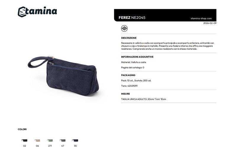 Necessaire in velluto a coste con scomparto principale e scomparto anteriore, entrambi con chiusura a zip e tiralampo in metallo. Presenta una fodera interna che offre una maggiore resistenza. Comprende anche un manico realizzato con lo stesso materiale.
