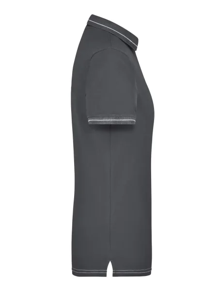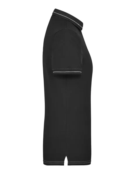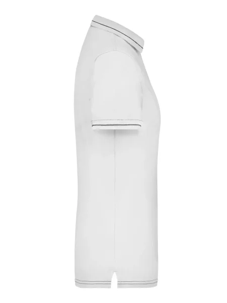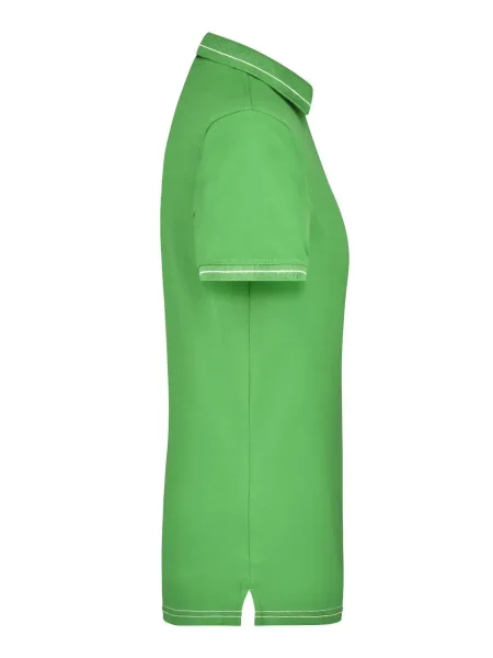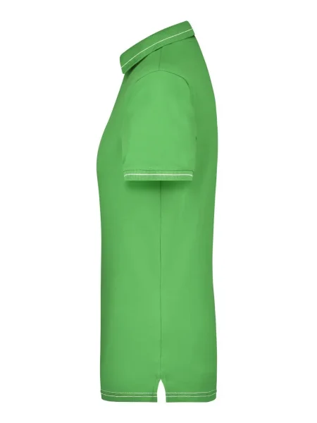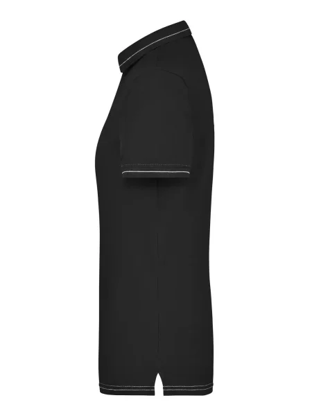 Polo donna Elastic James & Nicholson. Polo di alta qualità con righe a contrasto Morbido jersey elastico, Collo della polo in maglia e bande sulle maniche a contrasto, Nastro al collo, spacchi laterali. Bottoni in tono su tono, Leggermente avvitata, stretta, lunga distanza tra i 5 bottoni.