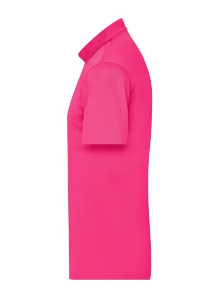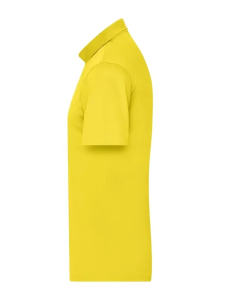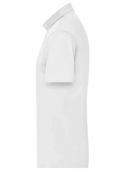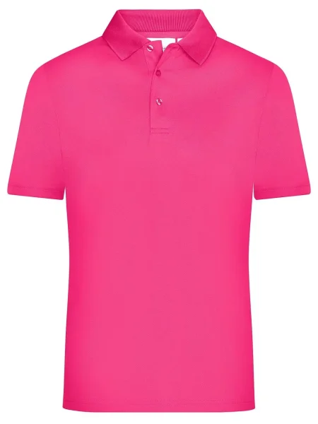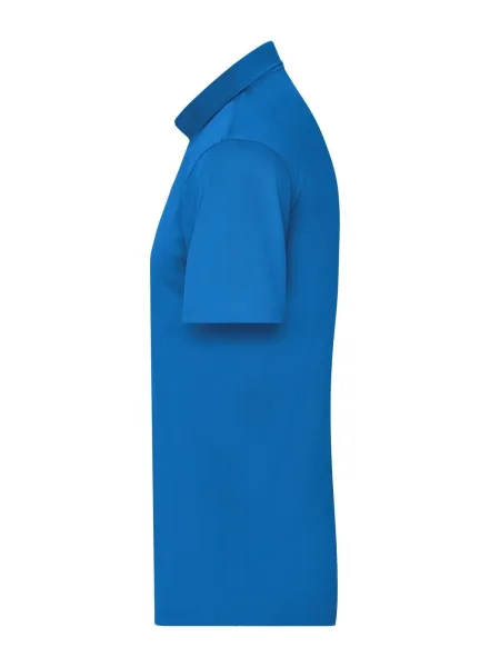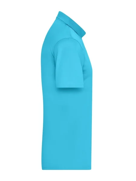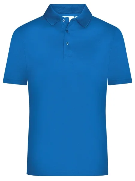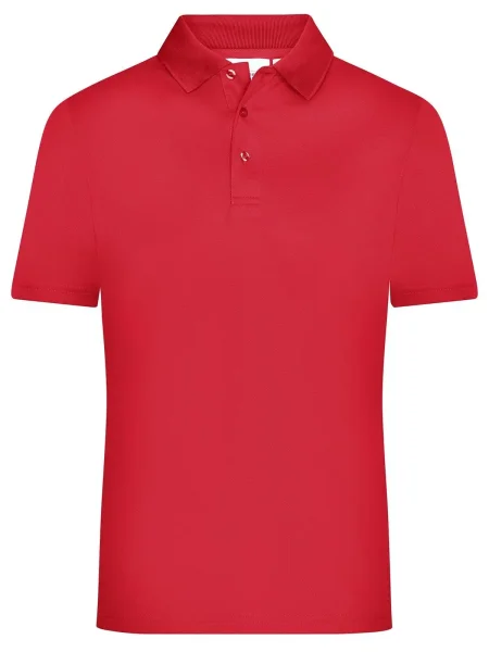 Polo uomo personalizzabile in poliestere 100%. Il tessuto di questa polo è molto traspirante e si asciuga rapidamente. I tre bottoni sono in tinta con il colore della polo. Il colletto è in maglia, l'etichetta all'interno della maglietta è removibile. Questa polo dell'azienda James & Nicholson è adatta sia per il tempo libero e sia per praticare sport.