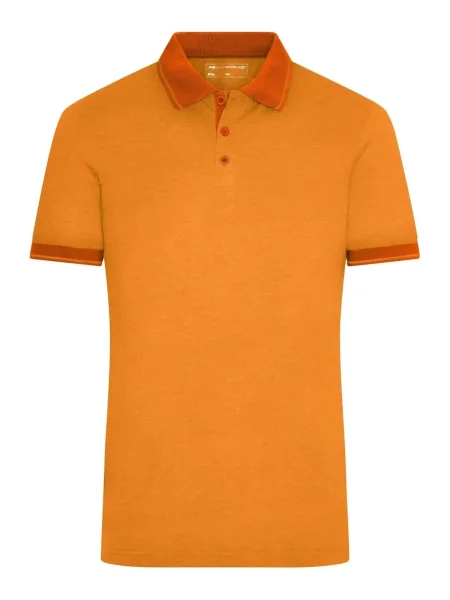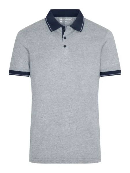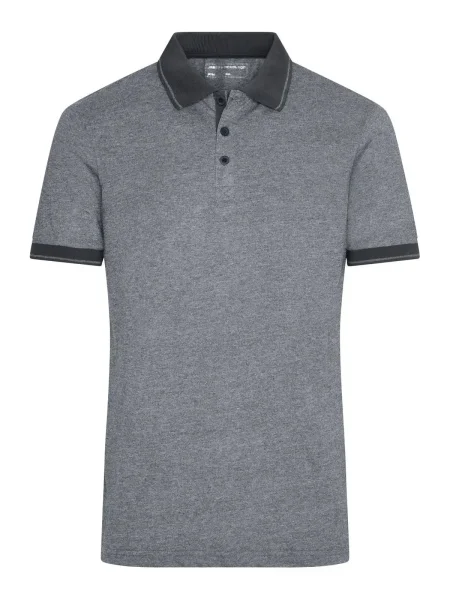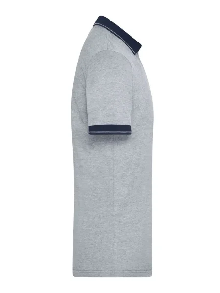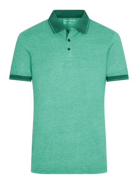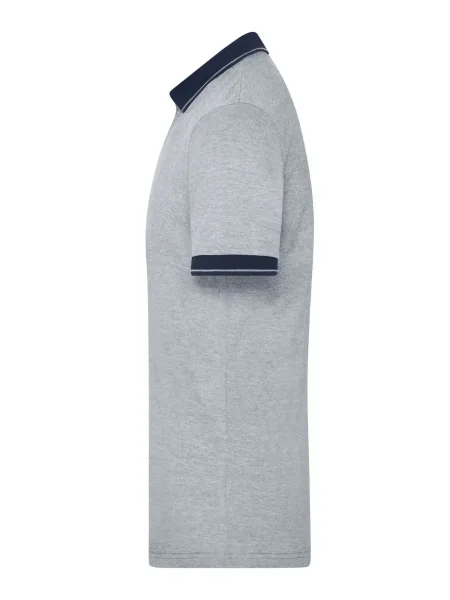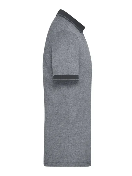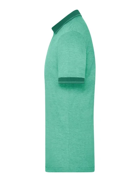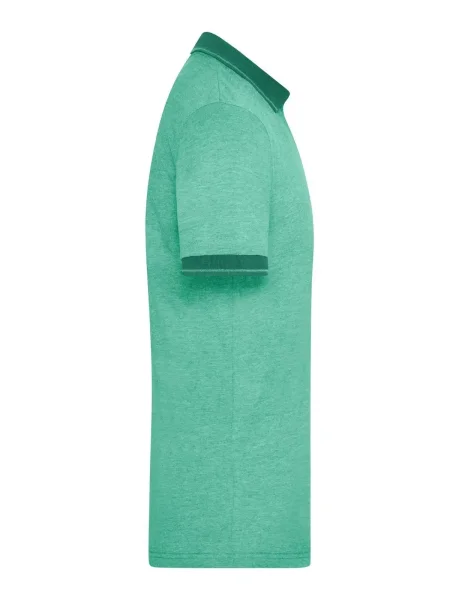 Polo Men's Heather Polo James & Nicholson. Polo a maniche corte, set-in, righe di colore contrastante su colletto e polsini, 3 bottoni tono su tono, struttura con cuciture laterali.