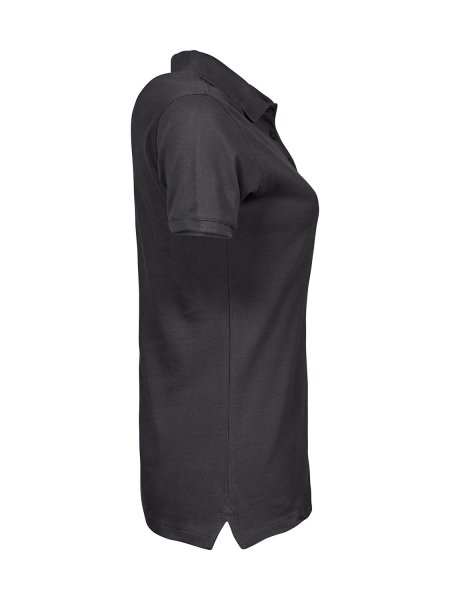 Polo in cotone pettinato ring-spun (pique) da donna ·215 g/m² ·doppio prelavaggio ·fattuccia sulle spalle ·abbottonatura con rifinitura accurata ·doppia cucitura sulle spalle, giromanica e base ·lavabile fino a 60° C