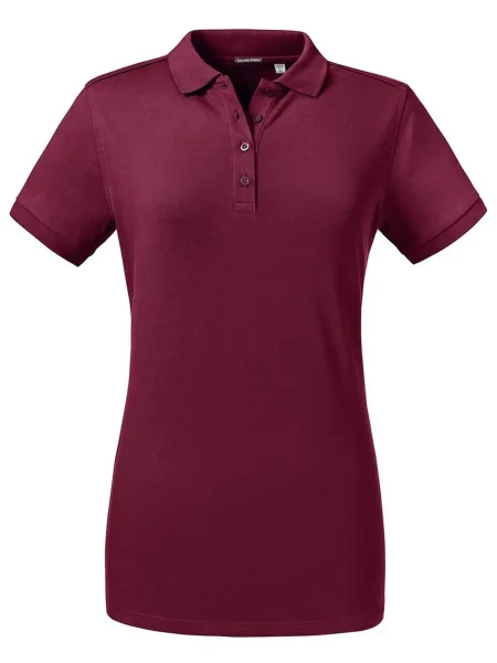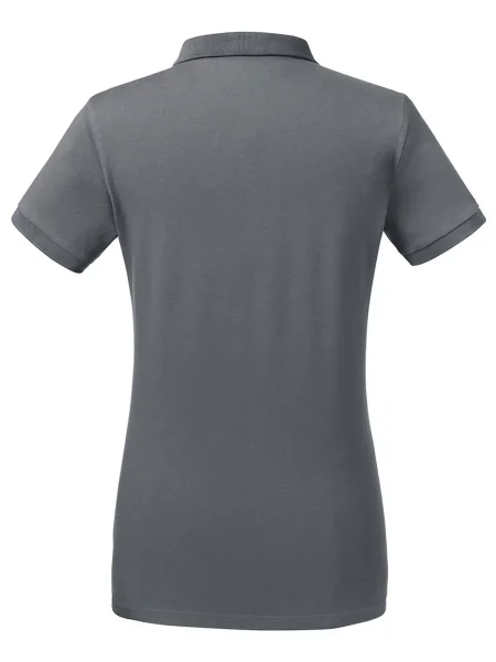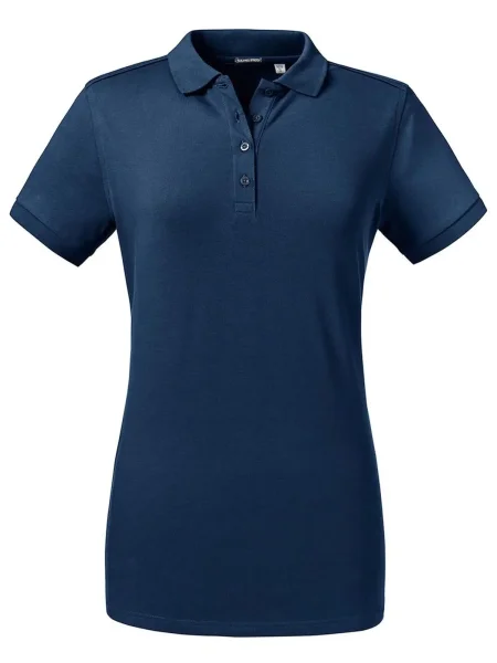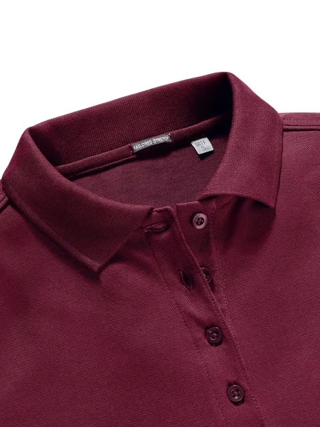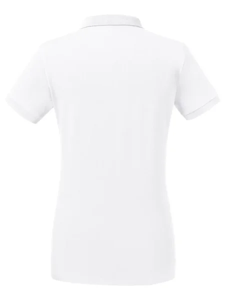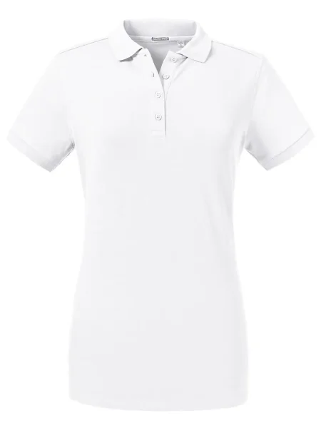 Polo da donna Russell a maniche corte in cotone con taglio sartoriale elegante. La polo ha una piccola etichetta senza logo sul collo. La polo può essere personalizzata con logo ricamato.