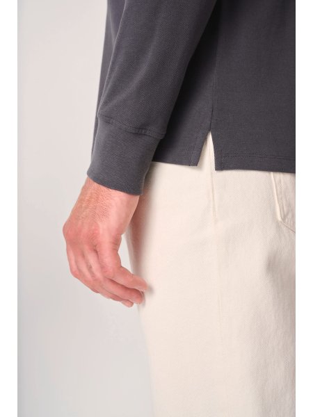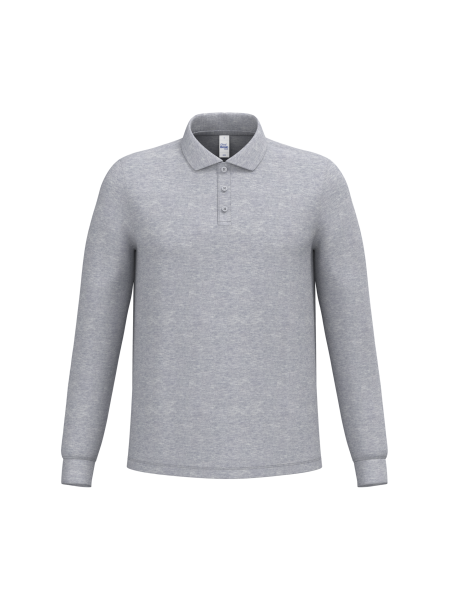 Polo uomo a manica lunga in tessuto piqué di alta qualità, morbida e traspirante per un comfort ottimale in ogni occasione. Realizzata con colori uniti in 100% cotone e nella variante Ideal Oxford Grey composta da 90% cotone e 10% viscosa. Il taglio dritto garantisce una vestibilità naturale, mentre colletto e fondo manica presentano una finitura a costine 1x1 per un look elegante e curato. Pattina con 3 bottoni tono su tono, nastro di rinforzo interno al collo e spacchetti laterali che assicurano resistenza e libertà di movimento. Orlo inferiore rifinito a doppio ago ed etichetta del marchio staccabile per una facile personalizzazione.
