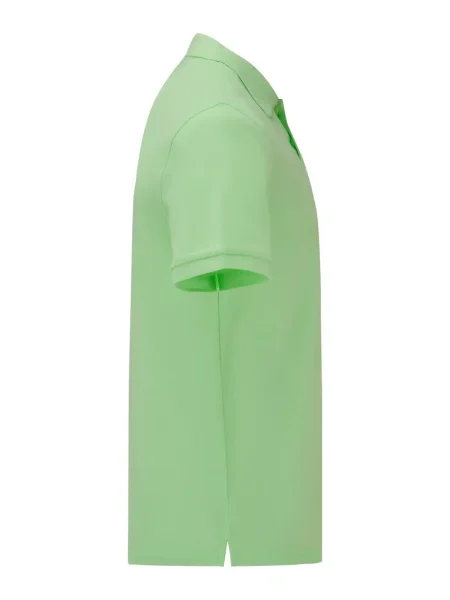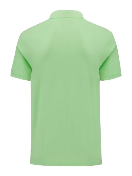 Polo morbida al tatto, vestibilità slim fit, chiusura a tre bottoni perlati colorati, struttura con spacchetti laterali, etichetta posteriore sul retro con strappo in tessuto.