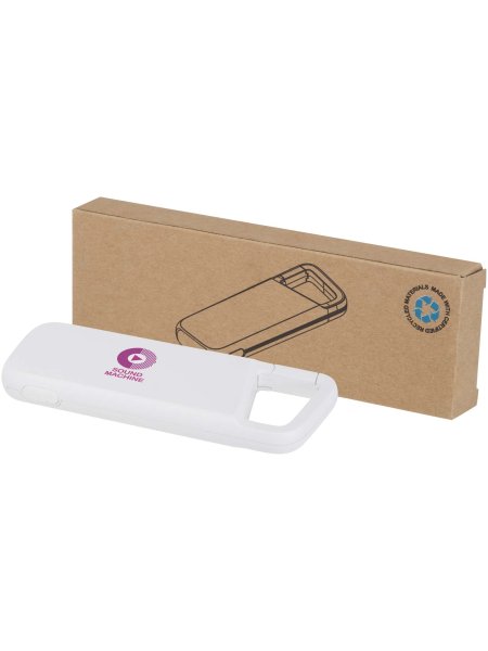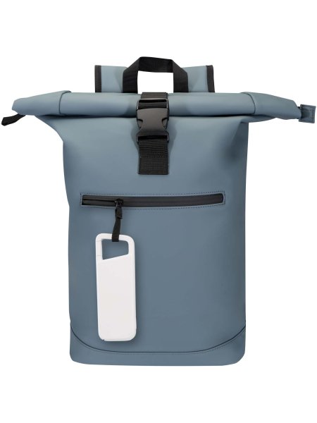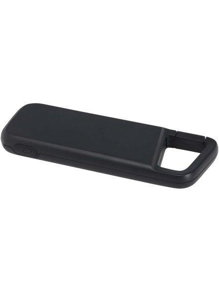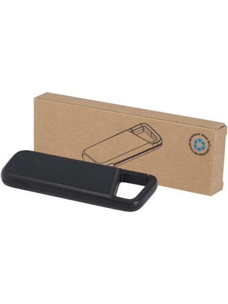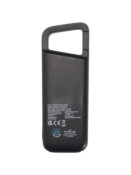 Power bank impermeabile da 5000 mAh con grado di protezione IPX5, realizzato in plastica riciclata e pensato per un utilizzo all’aperto. Il design impermeabile resiste a getti d’acqua a bassa pressione come la pioggia, mentre il moschettone integrato ne facilita il trasporto. Le porte USB sono protette da una copertura in silicone e l’indicatore LED segnala lo stato di carica, rendendolo ideale per campeggio, escursioni e attività quotidiane.