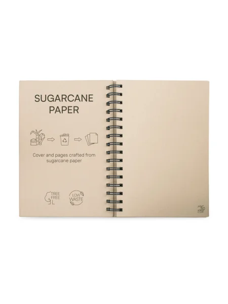 Quaderno anelli a5 con copertina rigida composta per l’80% in carta di canna da zucchero. Contiene 160 pagine semplici realizzate anch’esse per l’80% in carta di canna da zucchero da 90 g/m², con elastico di chiusura. Dimensioni: 147 x 214 mm.