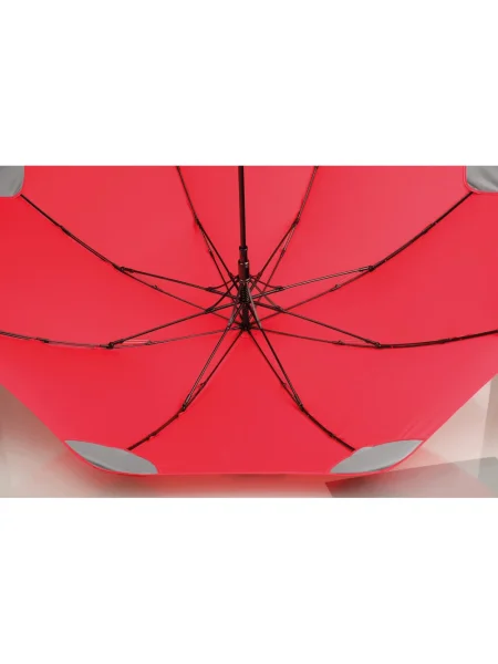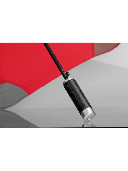 Ombrello apertura automatica in poliestere con 8 pannelli, stecche in fibra di vetro e struttura in similpelle che integra un’area dedicata alla stampa in doming. Fornito con borsa dotata di tracolla per un trasporto pratico. Dimensioni ombrello: ø1100 x 825 mm, fodera: ø90 x 680 mm.