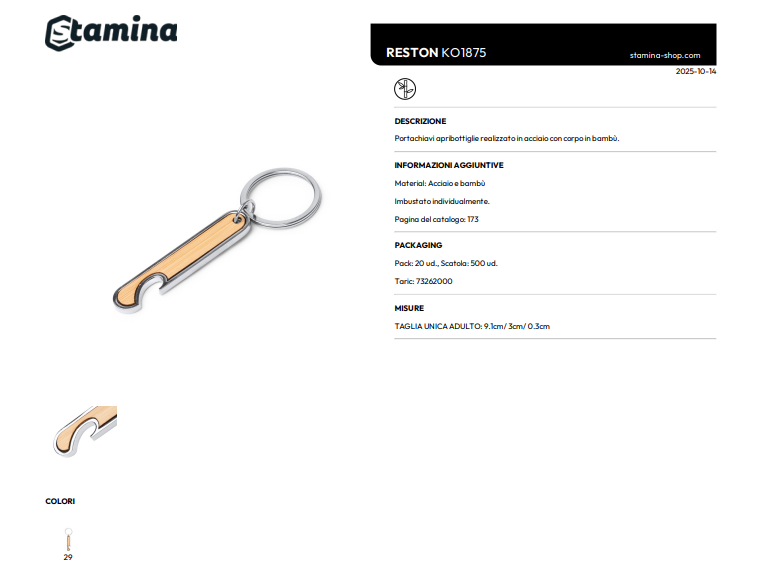 IL TUO PREVENTIVO Portachiavi apribottiglie in acciaio e bamboo RESTON