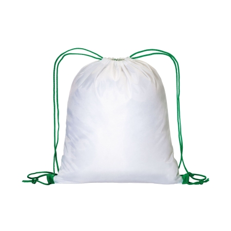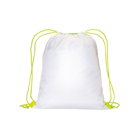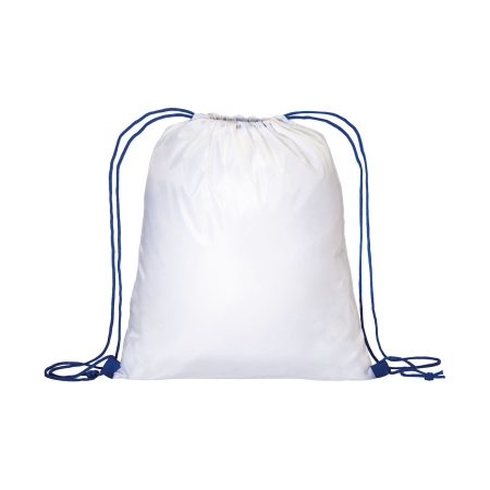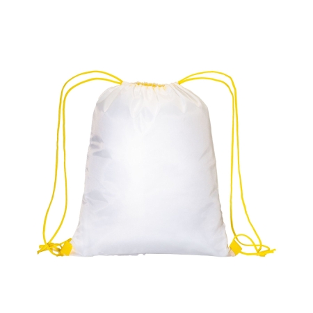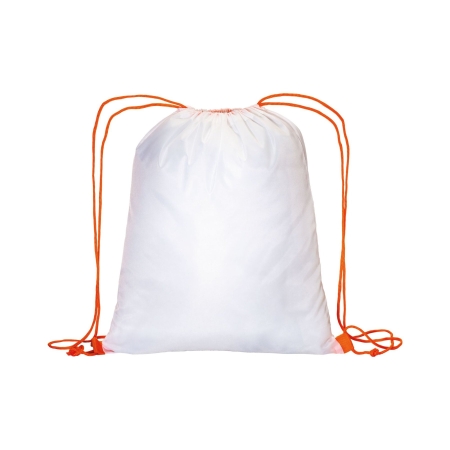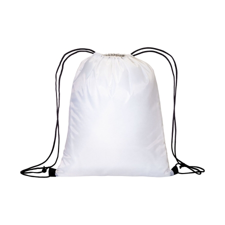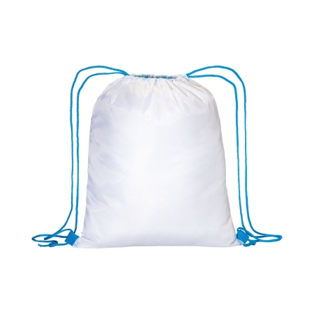 Zainetto bianco in poliestere 210T.Dotato dichiusura astrozzo con doppi cordini colorati fissati con asola. Adatto per la stampa in sublimazione.