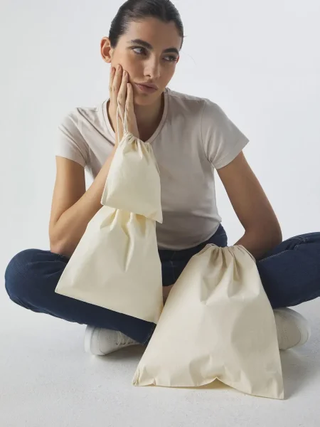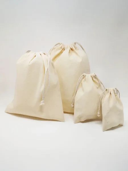 Sacchetto realizzato in 100% cotone organico, perfetto per un uso sostenibile e versatile. Dotato di cordino doppio in colore naturale per una chiusura pratica e sicura, è ideale per confezioni regalo, packaging ecologico o per contenere piccoli oggetti.