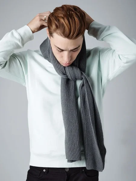 Sciarpa in tessuto a maglia a costine. Dimensioni: 170 x 20 cm