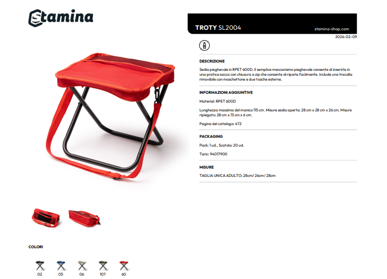 Sedia pieghevole in R-Pet 600D personalizzabile Troty