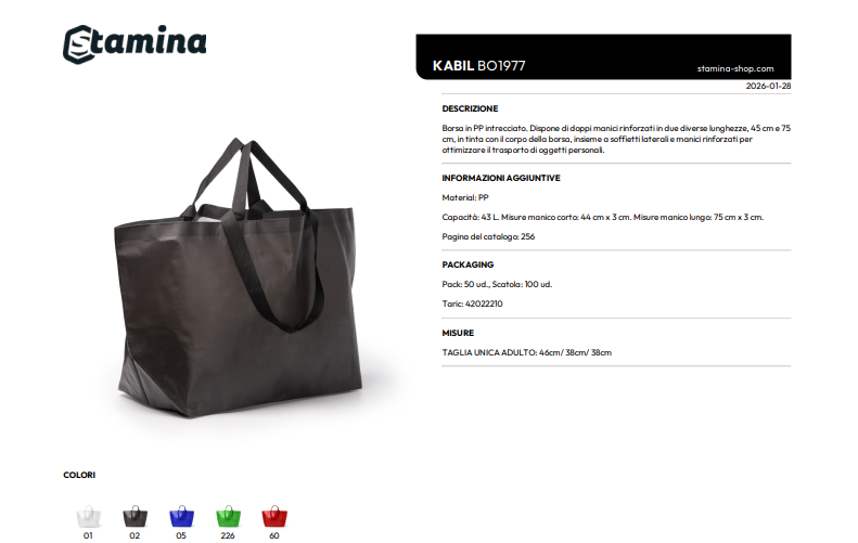 Shopper in polipropilene personalizzbaile Kabil 46 x 38 x 38 cm
