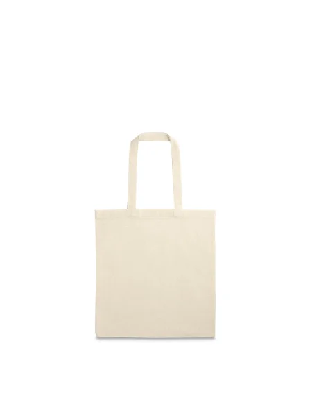 Borsa in 100% cotone (140 g/m²), con manici da 40 cm. Prodotto realizzato secondo uno standard certificato per l'uso di sostanze nocive nei tessuti. 270 x 330 mm