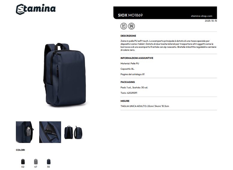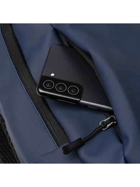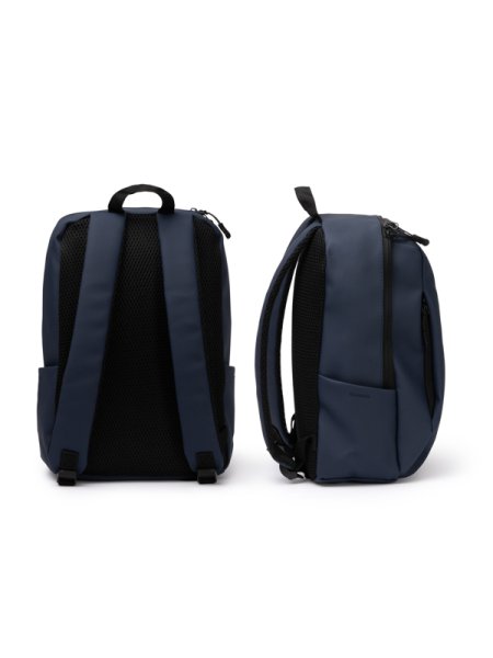 Zaino in pelle PU soft touch. Lo scomparto principale è dotato di una tasca speciale per dispositivi come i tablet. Dotato di due tasche laterali per trasportare altri oggetti come le borracce e di uno scomparto frontale con zip nascosta. Bretelle imbottite regolabili e cerniere di colore nero.