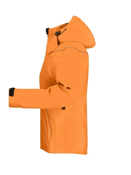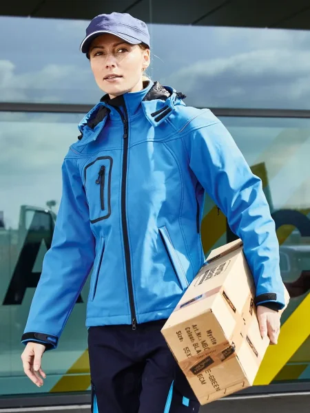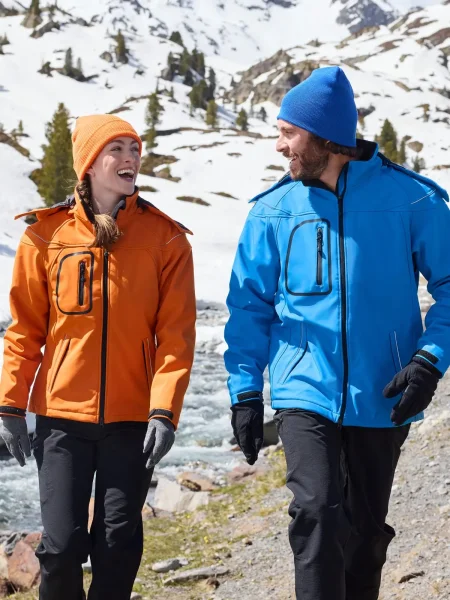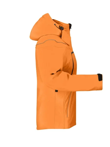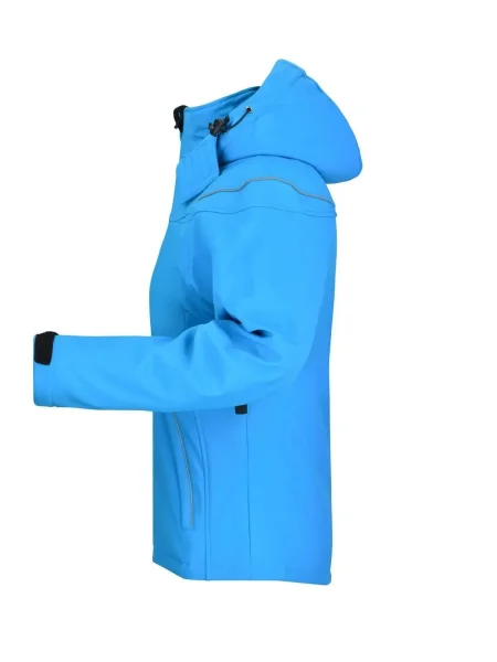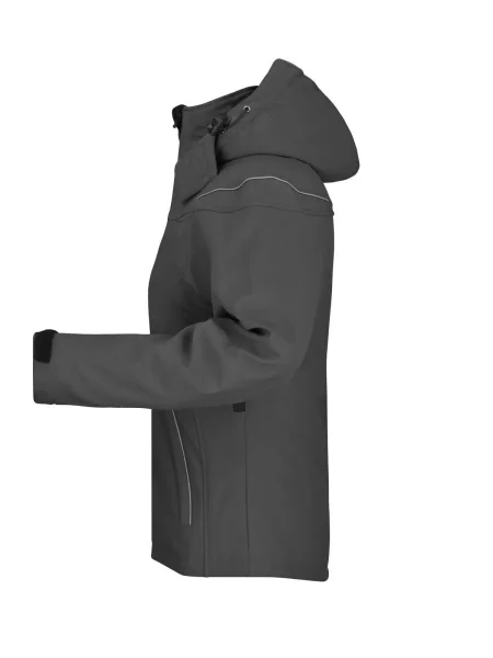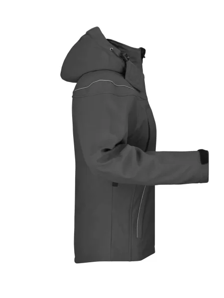 Giubbotto invernale in softshell, Tessuto funzionale a 3 strati con membrana TPU, Idrorepellente e antivento (5.000 mm colonna d'acqua), traspirante e permeabile al vapore, Le cuciture non sono chiuse, Cappuccio staccabile, imbottito e foderato, colletto in caldo pile, Cerniere sotto le maniche per un'ulteriore ventilazione, protezione antivento totale , Filetti a costa riflettenti sulle spalle e sulle tasche anteriori, 2 tasche anteriori, 1 taschino interno e tasca portacellulare, Cerniera bidirezionale, Cordino elastico con stopper in vita e sul cappuccio, Leggermente sciancrata. Cerniera per ricamo sulla schiena. Colonna d'acqua 5.000 mm, imbottito, antivento e idrofugo