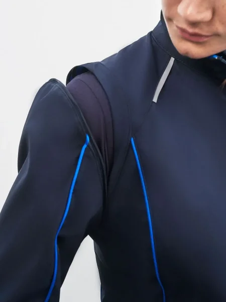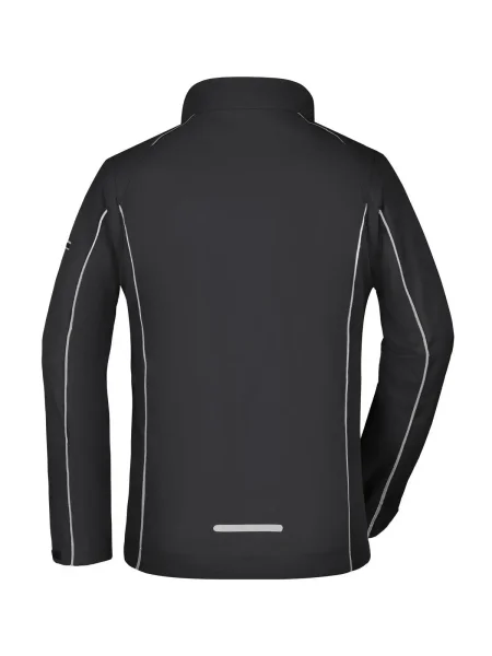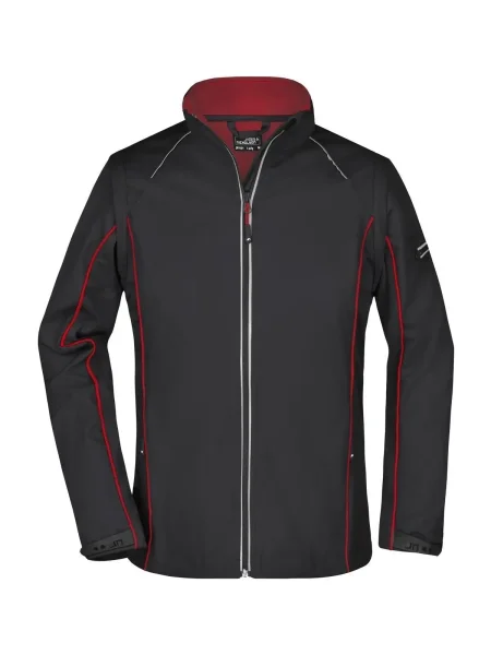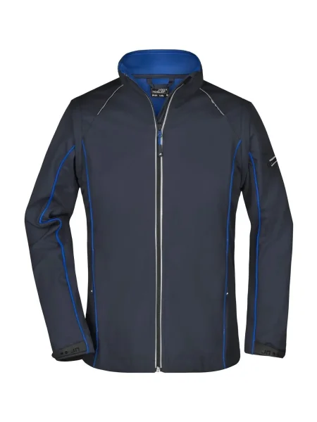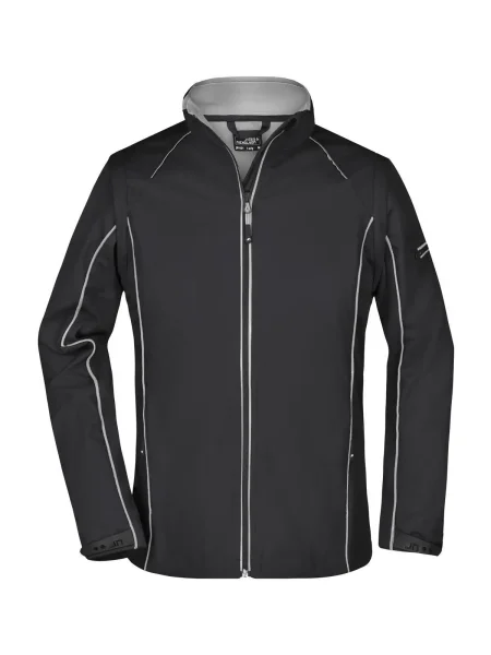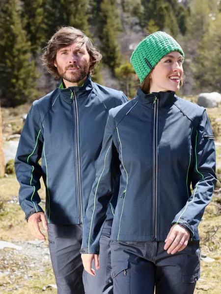 Giubbino in softshell, tessuto a tre strati con membrana tpu, antivento e idrorepellente (colonna d'acqua 5.000 mm), traspirante e permeabile al vapore. Collo alto, piping in contrasto sul davanti, sul retro e sulle maniche. Zip anteriore nascosta, dettagli riflettenti su spalle, retro e maniche. due tasche laterali con zip, una tasca interna, tasca sulla manica con zip riflettente. Maniche staccabili.