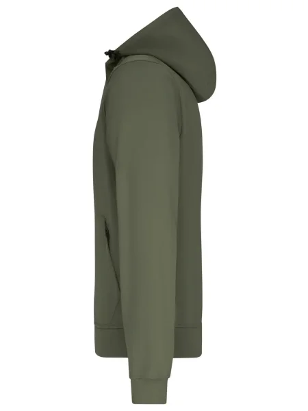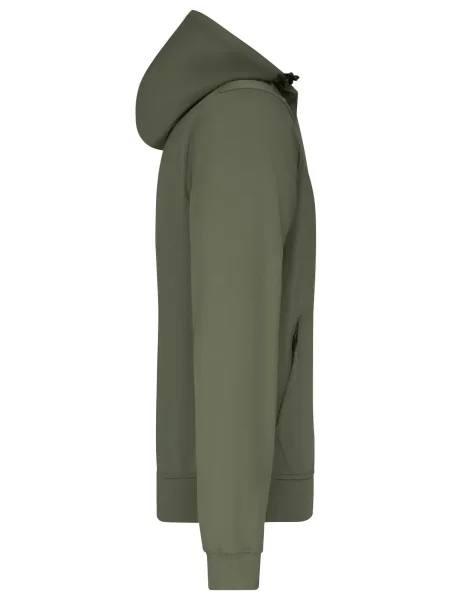 Felpa in Softshell a 2 strati con cappuccio, parte interna in contrasto, elastico in vita e nei polsini. Tasca a marsupio con cerniera, 1 tasca interna, cappuccio regolabile