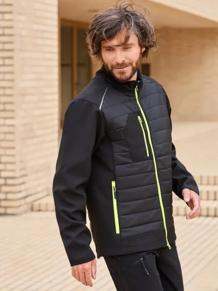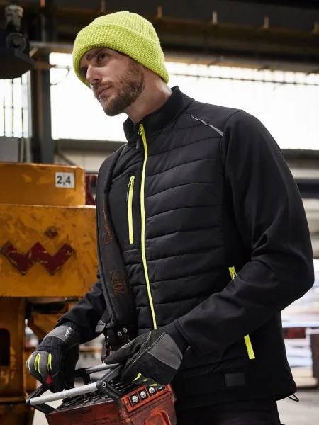 Giubbino softshell a due strati,trapuntato davanti e dietro, idrorepellente e antimacchia grazie al BIONIC FINISH ECO, imbottitura Warming DuPont Sorona, colletto alto, tasche laterali e sul petto, 1 tasca interna, dettagli riflettenti (no DPI), zip: YKK.