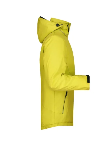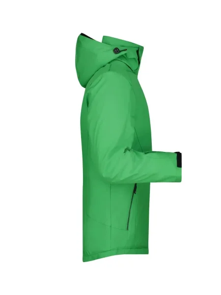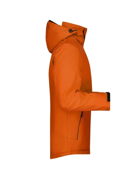 Giubbotto softshell elastica imbottita, Antivento e impermeabile 3 strati funzionali tessuto con membrana PU (5,000 mm colonna d'acqua), Traspirabile (2,000 g/m²/24h). Staccabile cappuccio imbottito con taglia regolabile in alcuni punti. Lunga zip frontale ricoperta con protezione mento, zip sotto maniche per ventilazione ulteriore, 2 tasche laterali con cerniera, piccola tasca su manica con zip. Tasca interna con zip, tasca per cellulare, regolazione protezione neve, anello pollice. Corda elastica con fermi sul bordo e cappuccio, Zip per decori sul retro. Velcro, lungo, sport, thermo, colonna d'acqua 5.000 mm, imbottito