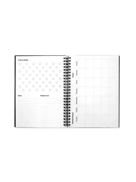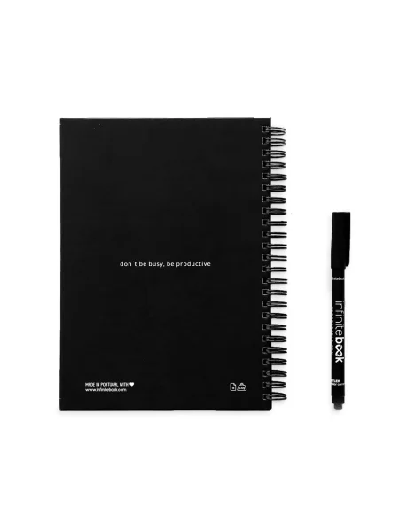Il starter kit "Infinite Diary" consente di cancellare facilmente tutto ciò che si scrive e di ricominciare il piano giornaliero tutte le volte che si vuole. Il kit contiene un quaderno "Infinite Diary" A5 con copertina rigida e spirale, un kit di pulizia (flacone spray vuoto, spugna e panno), un pennarello e un porta pennarello. Il quaderno ha 2 pagine per segnare le cose da fare, 10 pagine per l'organizzazione settimanale, 1 pagina per l'organizzazione mensile, 1 pagina per l'organizzazione annuale suddivisa in settimane e 22 pagine stile lavagna bianca per prendere appunti. Gli appunti possono essere scannerizzati. Prodotto in Europa. I prodotti sono forniti in una scatola. 148 x 210 mm | Scatola: 225 x 175 x 46 mm