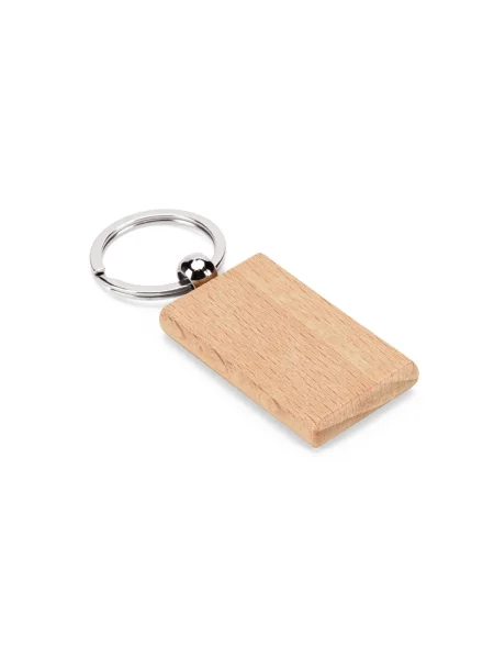 Portachiavi rettangolare in legno di faggio con anello in ferro. Poiché il prodotto è realizzato con materiali naturali, il colore del prodotto e il risultato della stampa possono variare da un prodotto all'altro. 50 x 28 mm