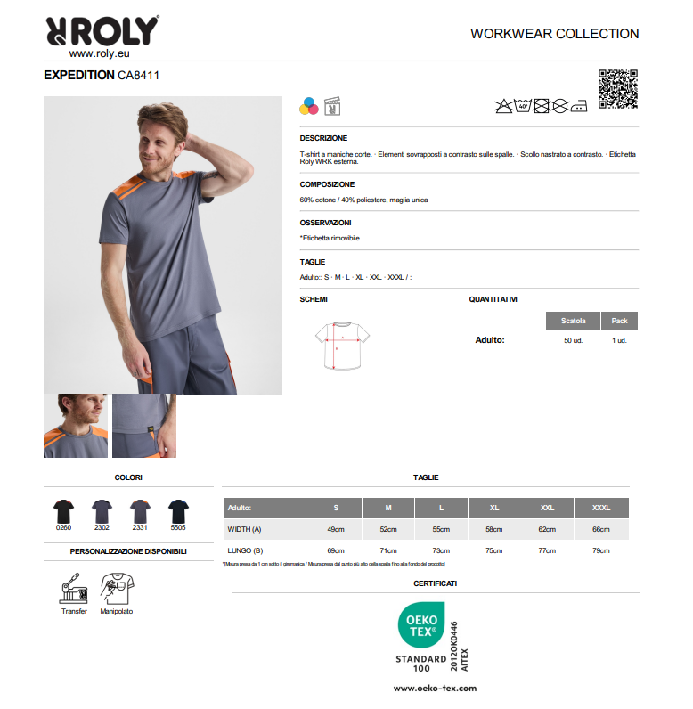 T-shirt a maniche corte da uomo in tessuto da 160 g/m² Roly Workwear Expedition