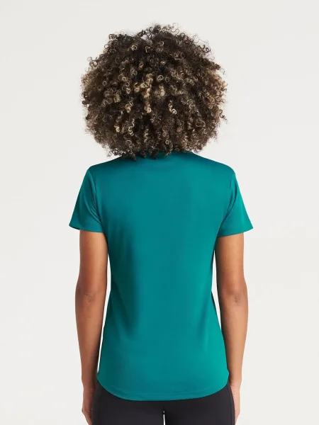 T-shirt maniche set-in ad asciugatura rapida, struttura con cuciture laterali, leggermente sfiancata, orlo stondato sul retro. Adatta alla sublimazione.