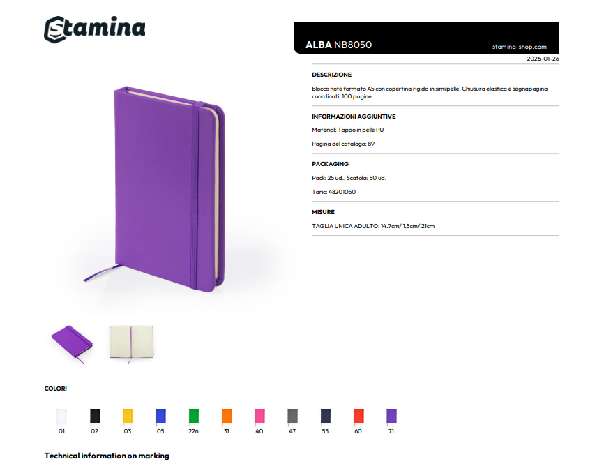 Taccuino A5 con elastico da personalizzare Roly Alba