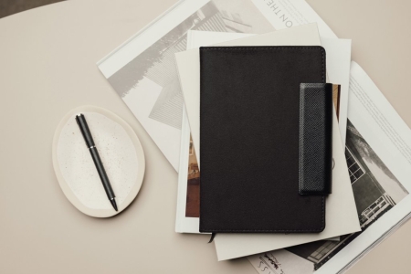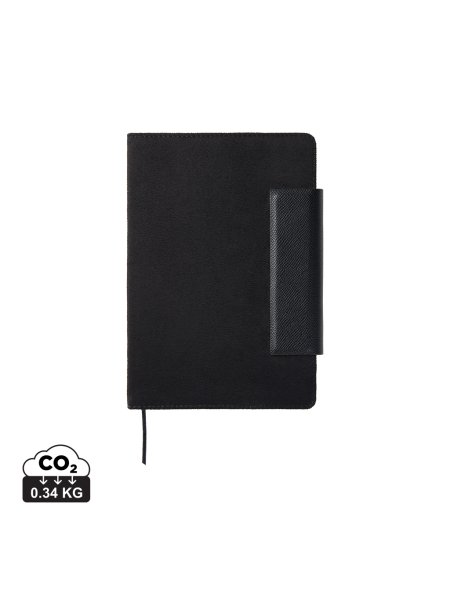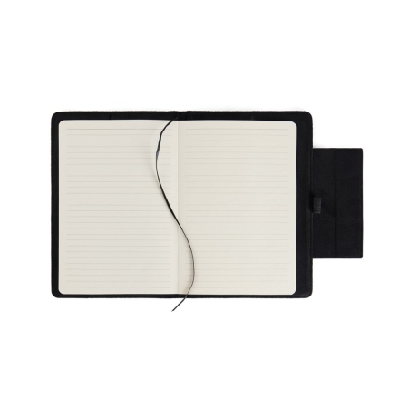 Un elegante taccuino A5 composto da 160 pagine a righe (80 fogli). È l'accessorio perfetto da portare alle riunioni, per tenere in ordine i tuoi appunti con stile. Il taccuino Marlow combina un design intramontabile con finitura in ecopelle riciclata, dettagli in PU e carta riciclata. Il taccuino è dotato di una pratica ed elegante chiusura magnetica. Certificato GRS (Global Recycled Standard), la certificazione GRS garantisce che l'intera catena di approvvigionamento dei materiali riciclati è certificata. Il contenuto totale riciclato si basa sul peso complessivo del prodotto. Questo prodotto contiene il 50% di carta riciclata certificata GRS e il 6% di poliestere riciclato certificato GRS.