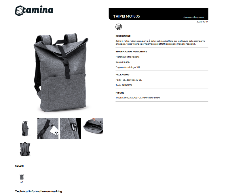 IL TUO PREVENTIVO    Zaino in feltro riciclato con patta TAIPEI
