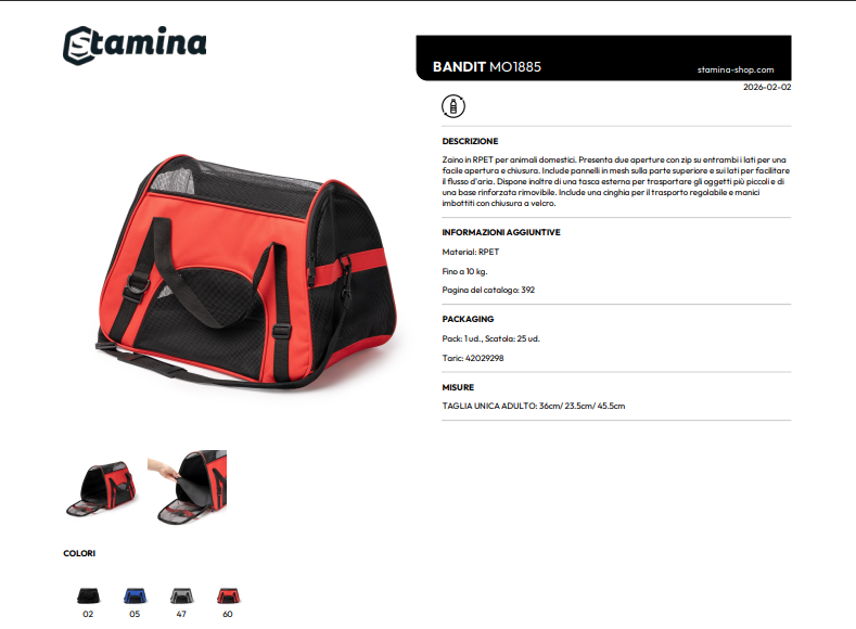 Zaino in RPET per animali domestici. Presenta due aperture con zip su entrambi i lati per una facile apertura e chiusura. Include pannelli in mesh sulla parte superiore e sui lati per facilitare il flusso d'aria. Dispone inoltre di una tasca esterna per trasportare gli oggetti più piccoli e di una base rinforzata rimovibile. Include una cinghia per il trasporto regolabile e manici imbottiti con chiusura a velcro. Per animali fino a 10 kg.
