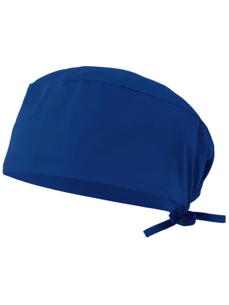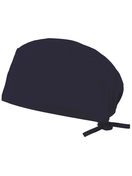Bandana medica in twill (190g/m²), in cotone (35%) e poliestere (65%). Con elastico sul retro e regolabile con nastri. Taglia unica: ø630 x 100 mm