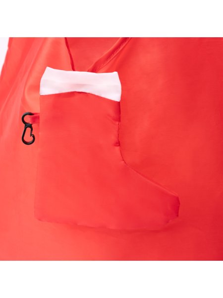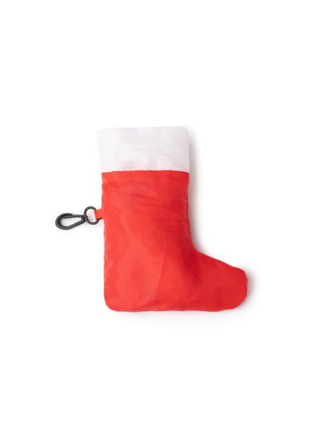 Borsa per la spesa pieghevole in morbido poliestere 190T. Caratterizzata da un design a forma di calza cucito sulla borsa, che funge anche da scomparto portaoggetti. Con manici e moschettone per il trasporto.