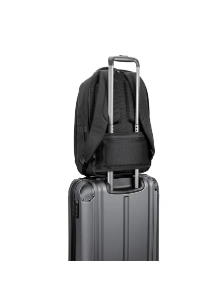 Zaino antifurto dal design unico, progettato per garantire una maggiore sicurezza ai vostri dispositivi e documenti. Realizzato in poliestere twill riciclato 600D, resistente all'acqua, con dettagli in PU e fodera in poliestere riciclato 210D. Dispone di uno scomparto principale con una tasca imbottita per un computer portatile fino a 17.3“ e un tablet fino a 10.5”, tasche laterali e uno tasca anteriore. Lo zaino offre un maggiore comfort durante i viaggi grazie alla maniglia superiore imbottita e allo schienale con imbottitura extra e alla cinghia trolley con tasca per i piccoli oggetti. Le tasche interne consentono di riporre e organizzare facilmente l'attrezzatura. Capacità fino a 20 L 310 x 450 x 200 mm