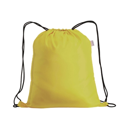 Zaini promozionali in RPET 210T con modello a sacca. Chiusura a strozzo. Sono ideali come gadget per eventi e fiere.