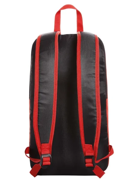 Zaini promozionali leggeri e sportivi, tasca anteriore con chiusura lampo, scomparto principale con chiusura lampo a 2 vie, retro e spallacci imbottiti. Area di stampa sulla tasca frontale: 8x17 cm. Dimensioni: 23,5x41x10 cm. Capacità: 8 litri.
