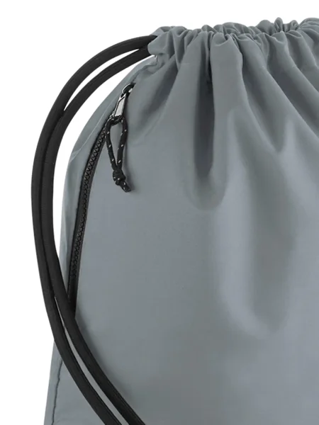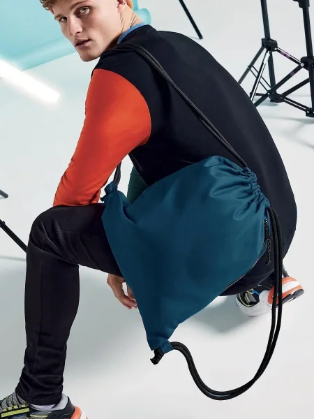 Sacca Gymsac con etichetta removibile TearAway per cambiare più facilmente il marchio, tasca con cerniera, anelli in tessuto per facilitare la decorazione, tirazip con cordino con dettagli catarifrangenti, coulisse con cordoncini spessi. Dimensioni: 40 x 48 cm. Capacità: 15 litri. Massima Area di stampa: 36x26 cm