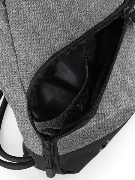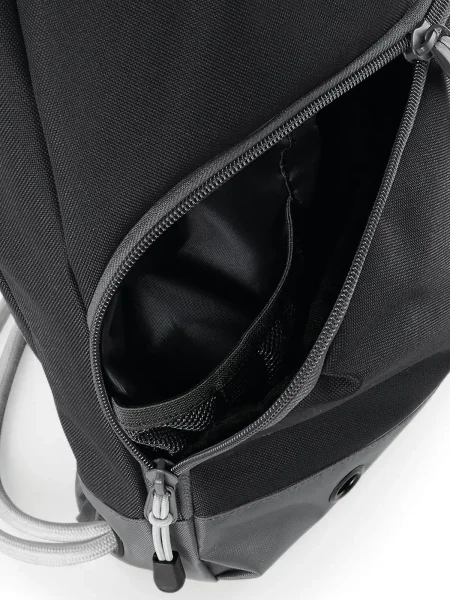 Zaino con ampio scomparto principale, etichetta staccabile TearAway™, cordoncini di chiusura spessi, occhielli di aerazione in metallo, scomparto per le scarpe, tessuto impermeabile, porta bottiglia.
