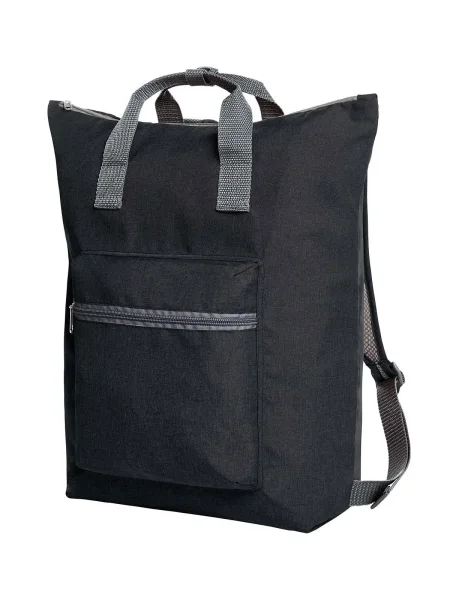 Zaino shopper richiudibile in poliestere 300D. Scomparto principale, tasca anteriore e tasca interna con chiusura lampo, manici con polsino a pulsante, sistema di trasporto traspirante.