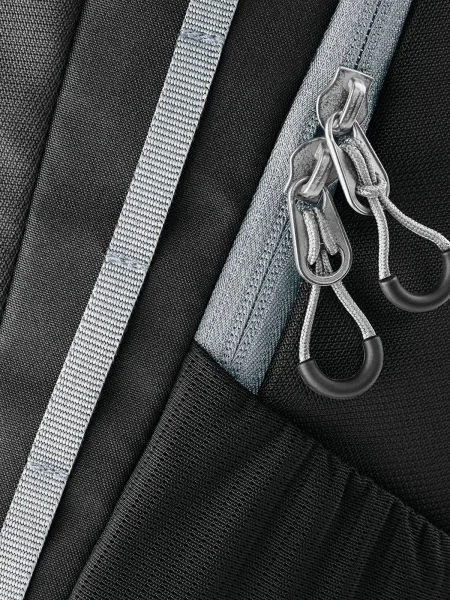 Zaino da viaggio con tasca interna con zip, tasche laterali in rete elastica, passanti per cinturini, dettagli riflettenti. Dimensioni: 31x48x19 cm, capacità: 18 litri, area stamapabile: 17x25 cm.