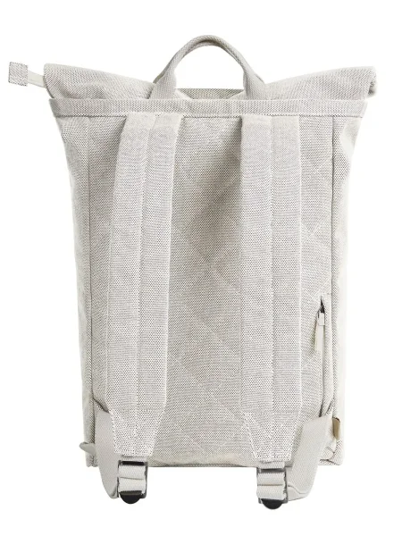 Zaino in tessuto policotone con ampio scomparto principale con chiusura lampo e ulteriore chiusura avvolgibile, ampia tasca a inserto piatta, tasca interna con chiusura lampo, retro imbottito e trapuntato, fondo imbottito, scomparto con chiusura lampo sul retro, spallacci imbottiti e regolabili, pregiati accessori metallici. Dimensioni: 28x43x14 cm. Area personalizzabile: frontale 28x33 cm.